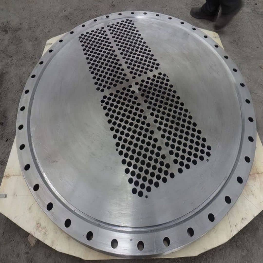 压力容器管板是连接筒体与封头的重要部件,其主要功能包括承受压力、传递载荷、密封以及保证容器内部介质的安全运行。管板通过焊接或法兰连接方式与筒体和封头连接,确保整个容器结构的强度和稳定性;同时,管板上的开孔用于安装管道、阀门等附件,实现介质的进出;此外,管板还具备良好的密封性能,防止介质泄漏,确保生产过程的安全可靠。
